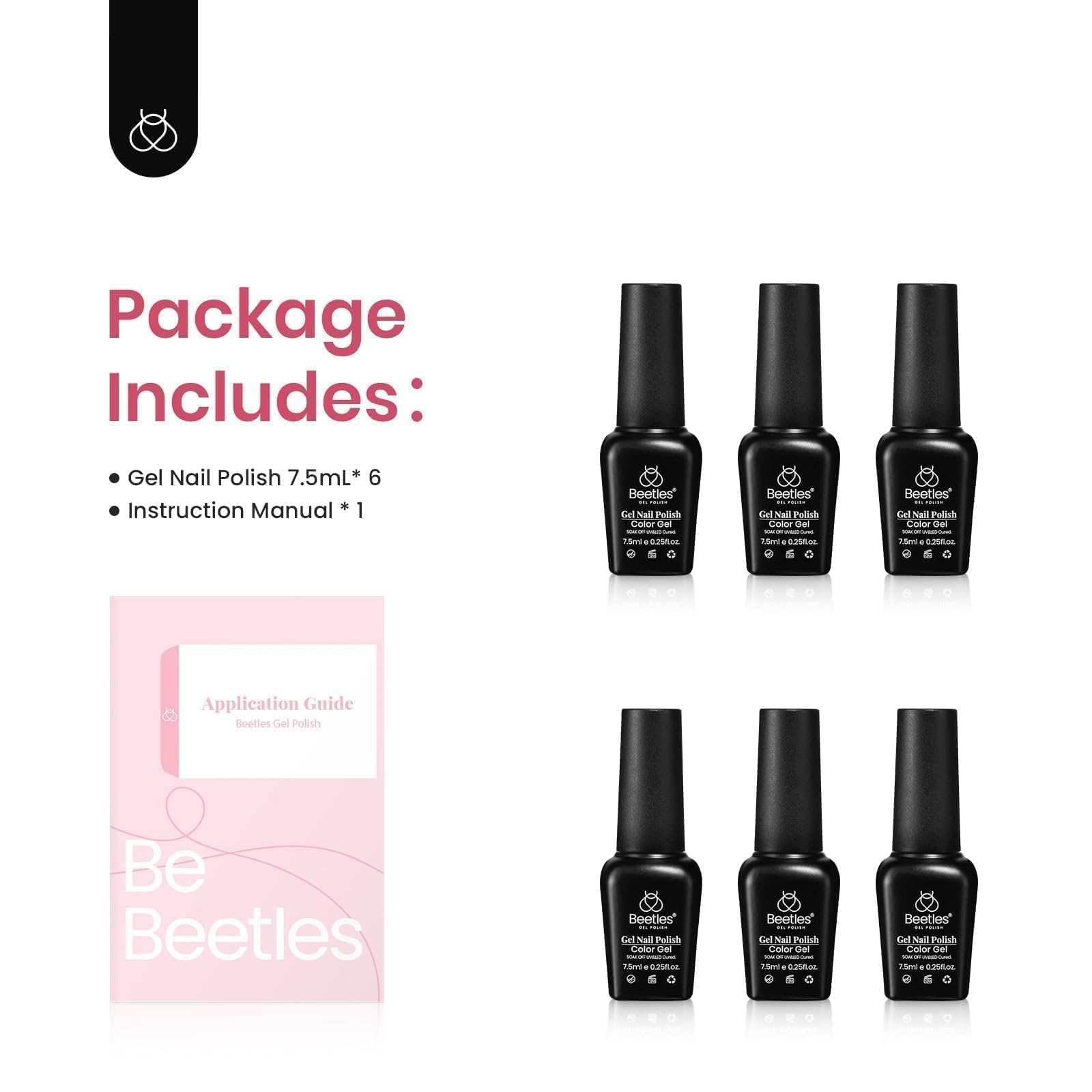 - High Shine and Durability: Beetles 6 pcs gel nail polish kit with good tenacity and highly pigmented, beetles premium gel material bring you brilliant shine finish, smooth appearance and flawless coverage.