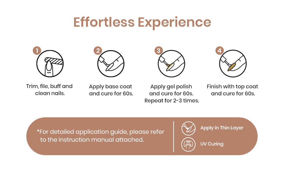 ✨ Quality & Brilliance: Crafted with premium ingredients, our gel nail polish offers a safe, low odor option. Experience a glossy shine, smooth finish, and flawless coverage with our highly pigmented, UV gel material.