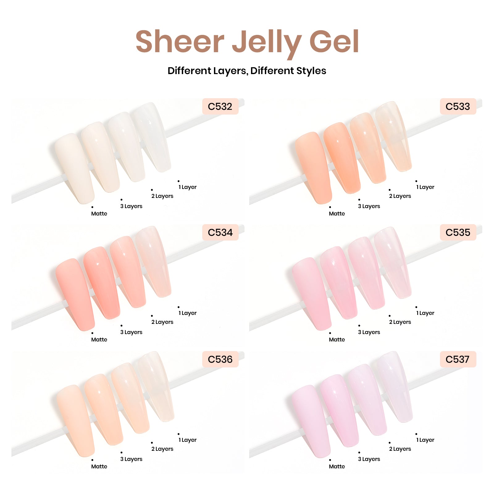 💅 2024 Trendy Colors: Keep up with the latest trends with our transparent jelly gel nail polish set featuring shades cl532 cl533 cl534 cl535 cl536 cl537. From chic French nails to mesmerizing swirl designs, these colors are perfect for any occasion!