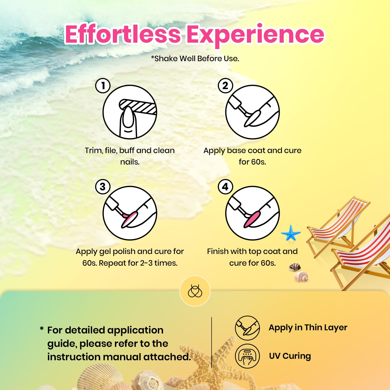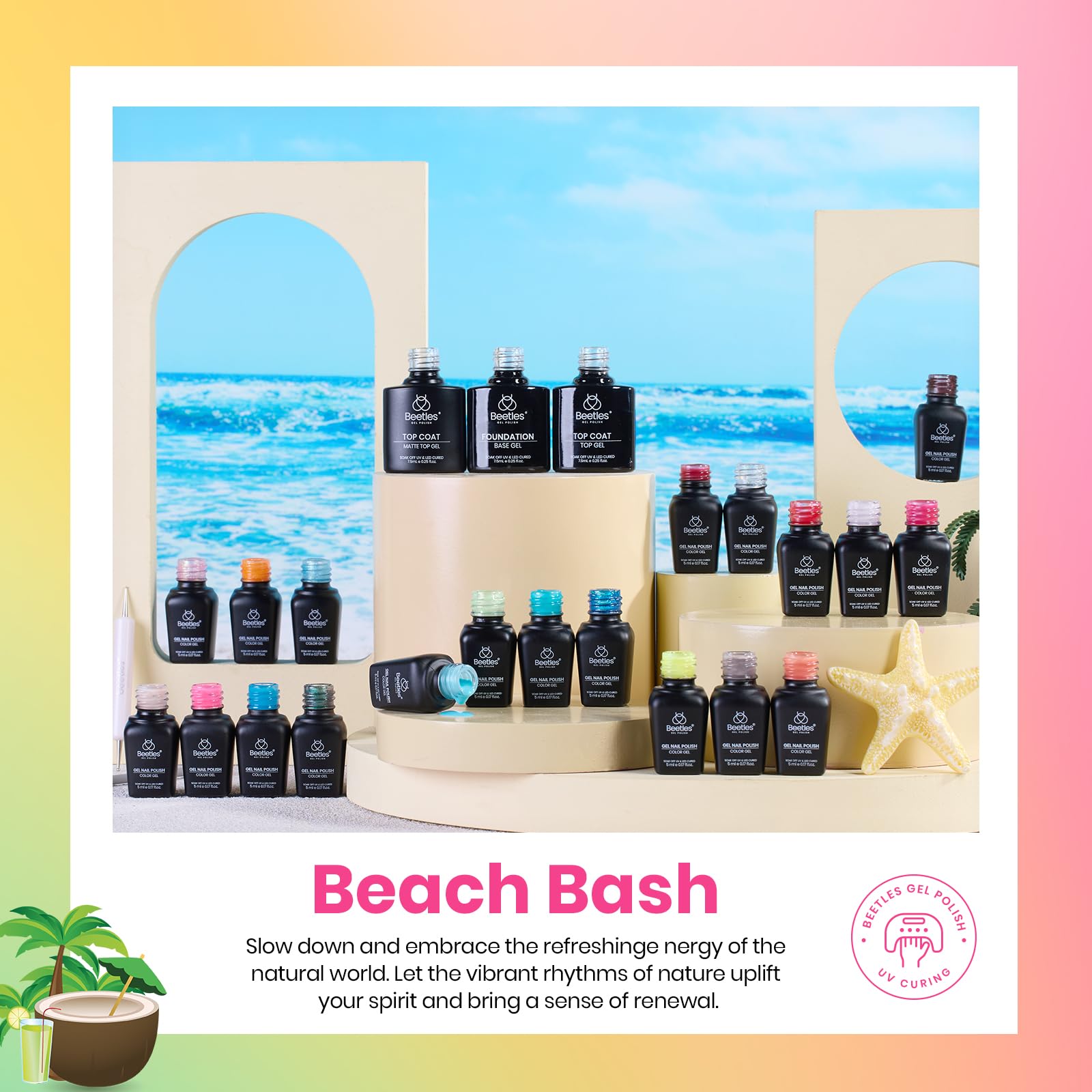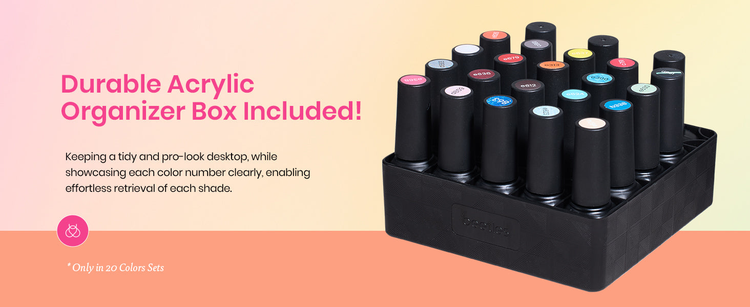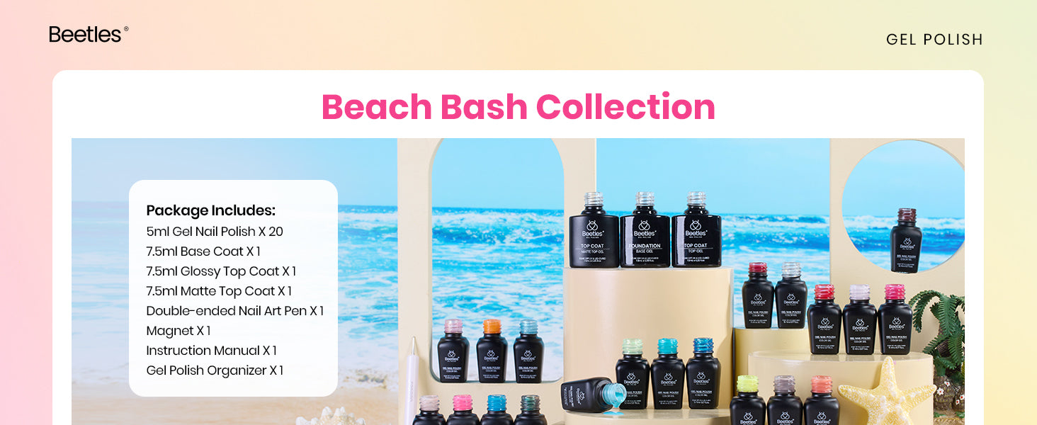 – WHAT YOU GET: 20 x Mini Gel Polish Rainbow Colors (5ml/0.17 fl.oz each bottle) + 3 x No Wipe Base and Glossy & Matte Top Coat (7.5ml each bottle)+Double-ended Nail Art Pen X1 + Magnet X1. Beetles’ 20-color Summer Collection for 2025 brings cat eye gel nail polish,glitter gel nail polish,pearl gel nail polish,classic gel nail polish,neon gel nail polish suitable for women&girls.