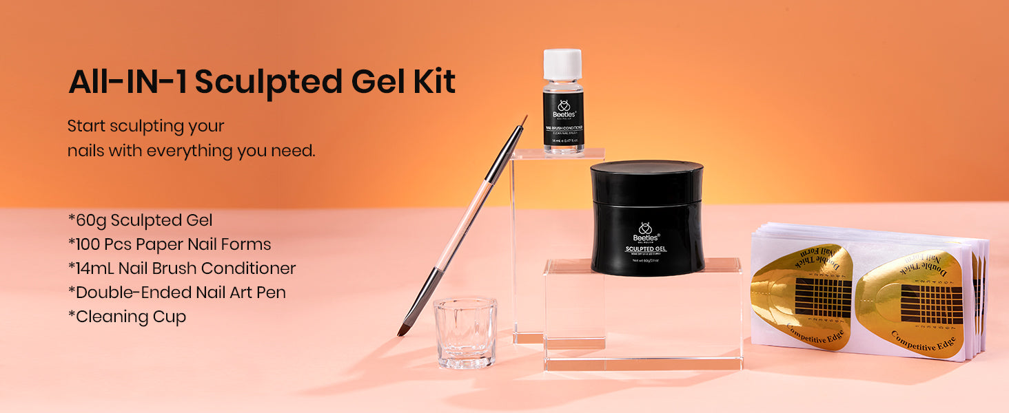 - 【10-in-1 Beetles Sculpted Gel Set】Beetles builder nail gel in pot can give you amazing results during your DIY manicure. Used for nail extensions to any length; as building gel for fuller nails; as BASE COAT or STRENGTHJEN GEL to increase the hardness of nails, making nails less likely to break; mixed with glitter powder to a Hybrid Gel, etc..