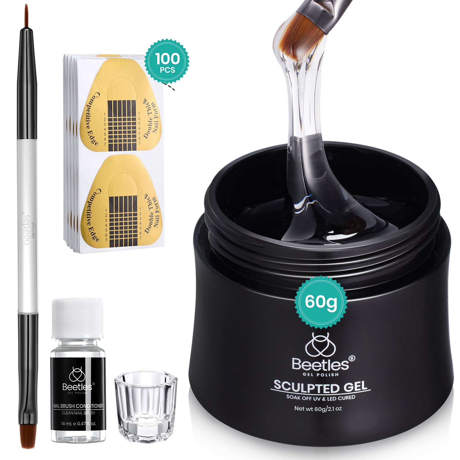 - 【Include Everything You Need】: 60g sculpture gel *1, glass cup *1, nail brush cleaner gel *1 , double-ended nail brush *1, glass cup *1, nail forms*100pcs. It is a perfect nail building set for nail extensions, apex building, nail enhancement, 3D nail art, DIY glitter gel, infill gaps, nail tips overlay, base gel, cover unevenness, rhinestone gel.