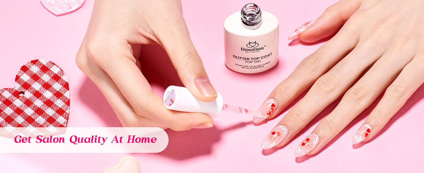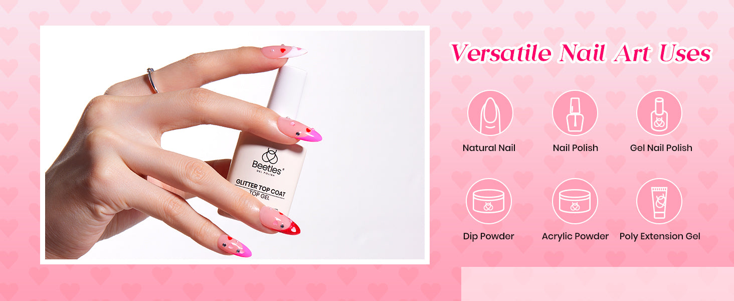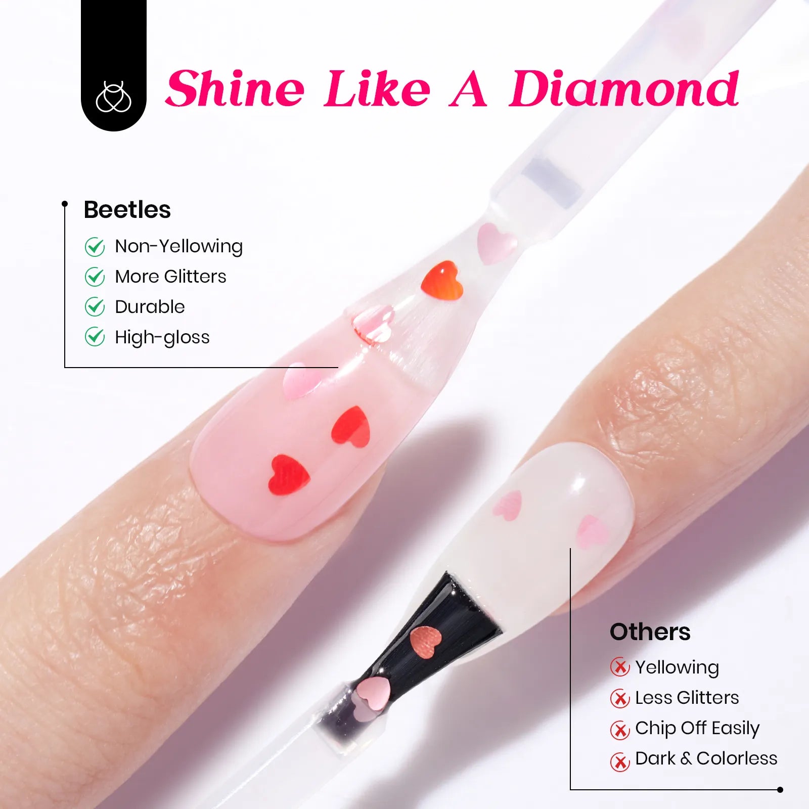- 2 IN 1 Beetles Gel Top CoatCompatible with ALL BRANDS Soak-off Gel Nail Polish. Suitable for natural nails, nail lamp gel nails, artificial nails, acrylic nails, nail tips, etc. Beetles Gel Top Coat provides durability and ensures a long-lasting manicure that seals in color and provides smooth protection against chips.