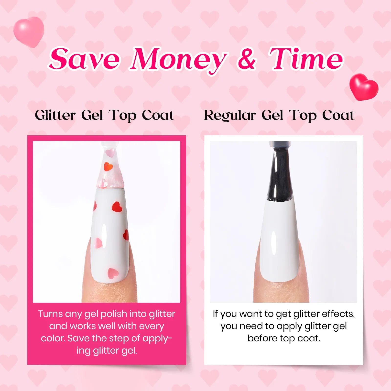 Beetles 6 Pcs Heart Star Valentines Day Reflective Glitter Gel Top Coat Set