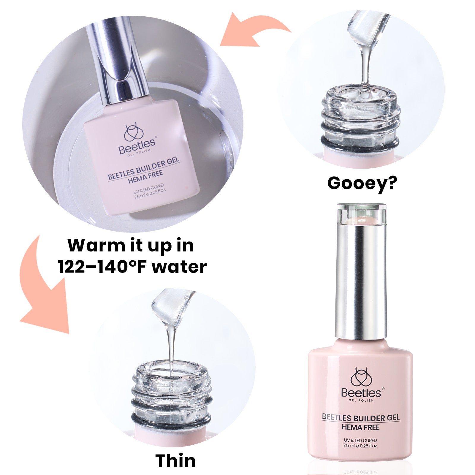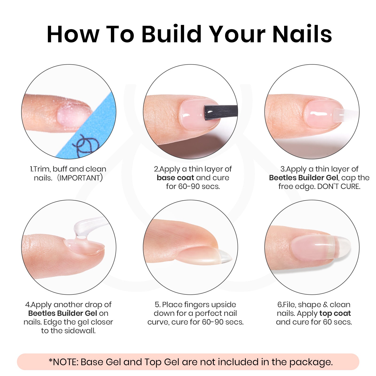 Beetles Builder Gel for Nails Hema-Free,2PCS 7 in 1 Clear & Nude Building for Nail Apex & Extension Strengthener LED Lamp Nails for Sensitive Nails Friendly for Beginners & DIY Salon Manicure