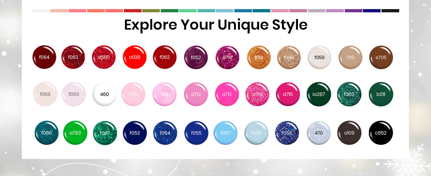 Classic Christmas Colors: This 36-color Christmas gel nail polish set captures the festive spirit with a curated mix of red, green, and glitter shades. Perfect for creating endless Christmas nail designs that shine bright for the holiday season.