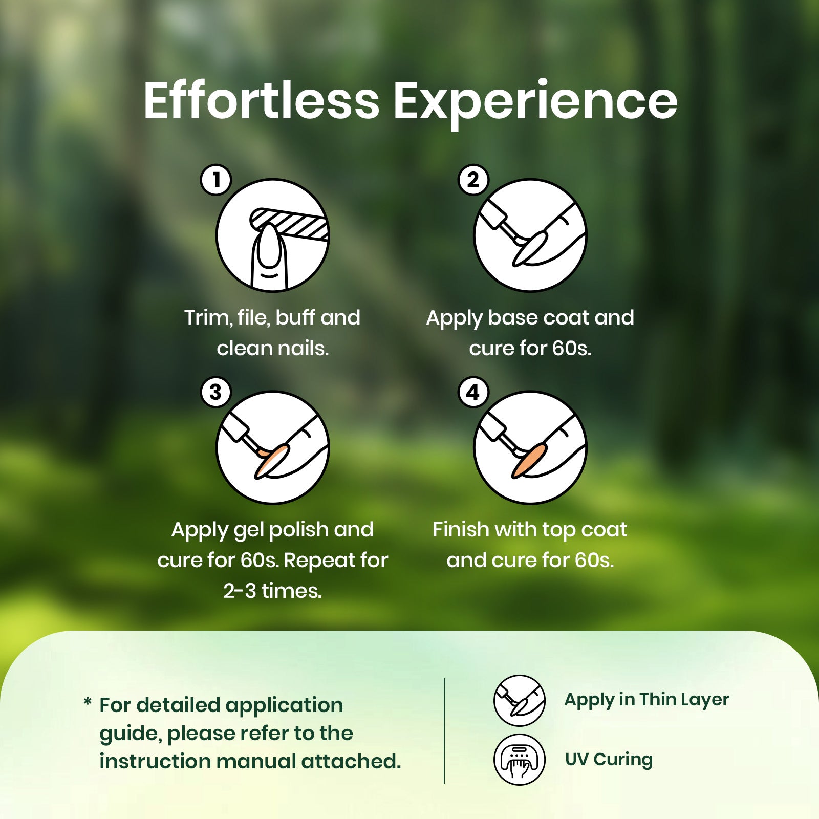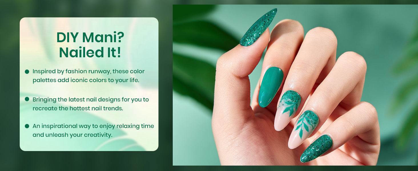Crafted from high-quality ingredients, our gel polish ensures a safe, low-odor nail beautifying experience. Perfect for indulging yourself or as a unique gift set that evokes the beauty of the emerald forest.