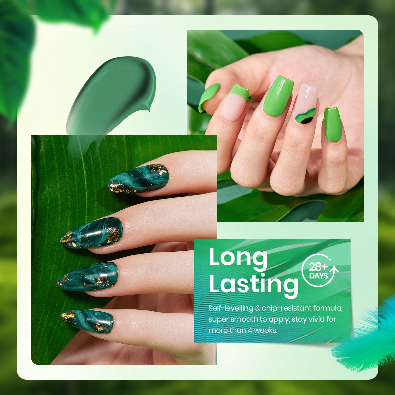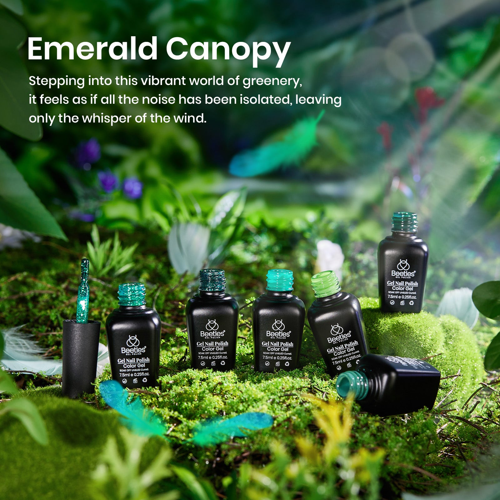Achieve flawless, long-lasting manicures with our gel polish set. The premium formula provides perfect shine and durability with proper application, letting you carry a piece of the emerald canopy with you.