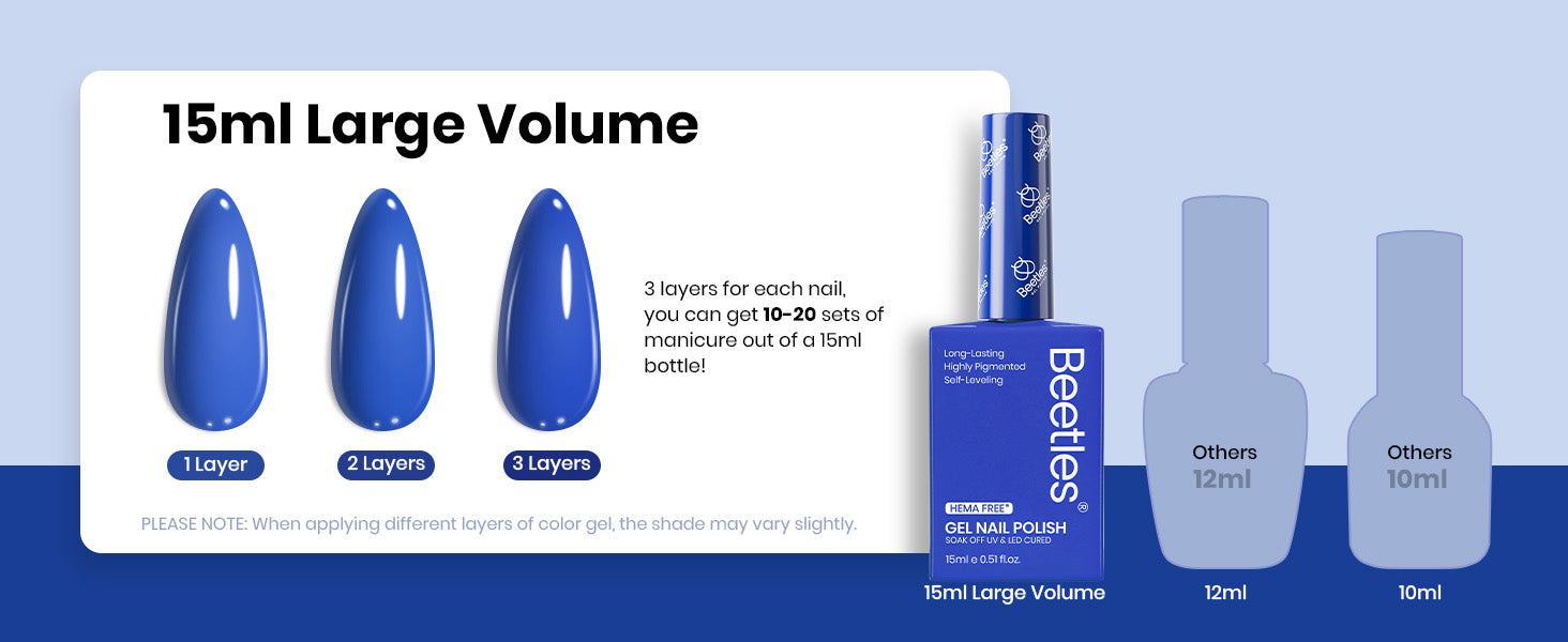 - 【What You Get】Beetles 1Pcs 15ml Blue Gel Nail Polish, it is a must-have color for spring and summer. Different from other black bottles, we design the color bottles according to the gel color, it gives you the most accurate view when doing gel manicure.